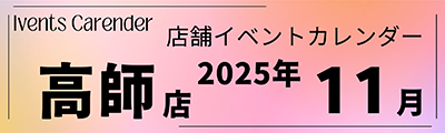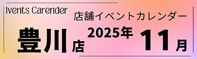 イベントカレンダー 各店スタッフが企画したイベントやお買得情報です。 店内では、イベント企画に合わせてメニューの提案、お買得品を取り揃えております。 ●令和7年 11月度の各店イベントカレンダー公開中です。 本店 東店 豊川店 高師店 蒲郡店 ※ イベントの内容は、商品の入荷状況等により中止させて頂く場合があります。ご了承下さいませ。 イベントカレンダー