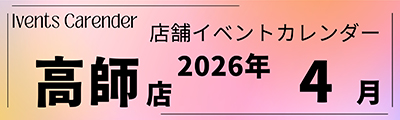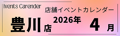 イベントカレンダー 各店スタッフが企画したイベントやお買得情報です。 店内では、イベント企画に合わせてメニューの提案、お買得品を取り揃えております。 ●令和8年 4月度の各店イベントカレンダー公開中です。 本店 東店 豊川店 高師店 蒲郡店 ※ イベントの内容は、商品の入荷状況等により中止させて頂く場合があります。ご了承下さいませ。 イベントカレンダー
